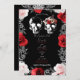 Skeleton Skull Red Pink Roses Gothic Engagement Invitation