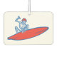 Surfs up! Skeleton surfer car air freshener features a beanie wearing skeleton catching a wave on his red surfboard. Makes a great gift for surfers, snowboarders and other extreme sports.