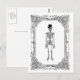 A vintage skeleton, looking dapper in his top hat, is framed in a fancy vintage frame to make this great black and white Halloween postcard.