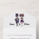 Unique Wedding invitation with a couple of elegantly dressed skeletons. It includes an invite and RSVP postcard for your guests to cut off and send back.