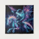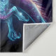 a skeletal witch riding a dragon fantasy Tapestry . The style blends elements of neon art and celestial themes, creating a dynamic and visually striking composition that emphasises both the mystical and the surreal. Both the witch and dragon have sugar skull elements in them making this truly a unique piece. Add a spooky or funny saying to customise the tapestry to make it your own. This is perfect for Halloween or any time of the year.