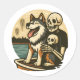 Skeleton with Dog on Haunted Lake Horror Art Classic Round Sticker