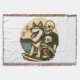 Skeleton with Dog on Haunted Lake Horror Art Throw Blanket