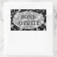 Skeletons on a black background and BONE APPÉTIT in chic lettering, these rectangular stickers are fun for your Halloween party. MATCHING items in our store.