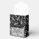 Skeletons on a black background and your message in chic lettering on the front, you'll have fun with these tent style ribbon closure style party favour boxes for Halloween parties, weddings and more. MATCHING items in our store.