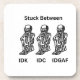 Three skeletons on a coaster set with IDK, IDC, IDGAF.
