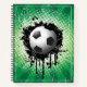 This notebook is shown in a regular shape with sketch pages in a art print of a soccer ball.