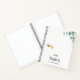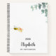 A chic white background. Decorated with watercolored eucalyptus greenery, foliage and a cute, happy smiling bee delivering an envelope. Personalise and add a name, year and a tiltle. The name is written in black with a large modern hand lettered style script. Perfect for sketching or taking notes.