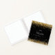 A stylish black background with faux gold glitter dust. Add a year, your name, and a title. The name is written with a modern hand lettered style script.