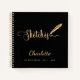 A chic black background. With the text: Sketches and decorated with a feather pen. Personalise and add a name and text (or delete)