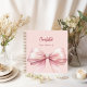 A blush pink background colour. Decorated with a large pink bow. Personalise and add your name.