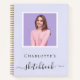 A lavender, violet coloured background. Personalise and add your own photo. Add a name and a title. The title is written with a modern hand lettered style script with swashes. Black coloured letters. A notebook for sketching your kids, for for your home office.