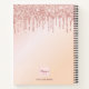 A stylish girly and feminine rose gold and blush pink gradient background decorated with rose gold faux glitter drips, paint dripping look. Personalize and add your name, monogram letter and a title. The title inside the faux glitter ribbons. The name is written with a large trendy hand lettered script with swashes. To keep the swashes only delete the sample name, leave the spaces or emoji's in front and after the name. Rose gold colored text.
