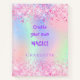 A trendy holographic coloured background with pastel colours in pink, purple, mint green. Decorated with confetti in pink. Personalise and add a name,