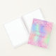 A trendy holographic coloured background with unicorn and rainbow pastel colours in pink, purple, mint green. Decorated with confetti in pink. Personalise and add a name, The title: sketchbook written with a girly modern hand lettered style script with swashes. To keep the swashes only delete the sample name, leave the spaces or emoji's in front and after the name.