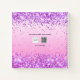 A pink gradient background. Decorated with pink confetti.. Personalise and add a name, The title: sketchbook written with a girly modern hand lettered style script with swashes and a brush. Purple coloured letters. A notebook for drawings, sketching, notes and school homework.