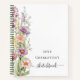 A white background colour. Decorated with wildflowers in pink, purple and yellow. Add a name and a date.
