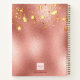 A dark rose gold faux metallic looking background with dripping faux golden stars. Decorated with a faux gold geometric frame and burgundy, pink and rose gold coloured flowers, florals. Personalise and add your monogram letters, initials and a title. Burgundy coloured letters. Can be used as a sketchbook, diary, taking notes, to-do lists.