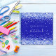 Royal blue background, decorated with faux glitter dust. The title: sketchbook written with a girly modern hand lettered style script with swashes. White coloured letters. A notebook for drawings, sketching, notes and school homework.