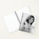 A faux silver metallic looking background. Personalise and add your own photo, a name, monogram letter and a year. The name is written in black with a large modern hand lettered style script with swashes. The monogram letter in white. For taking notes, as a sketchbook, diary, journalling, school, work or organising your personal/family life. To keep the swashes only delete the sample name, leave the spaces or emoji's in front and after the name