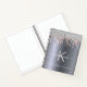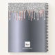A silver metallic looking background with rose gold, pink and faux silver glitter drips, paint dripping look. Personalise and add a name, monogram letter and a title. The name is written in white with a large modern hand lettered style script with swashes. Perfect for school, as a sketchbook or for taking notes.