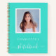 A turquoise coloured background. Personalise and add your own photo. Add a name and a title. The title is written with a modern hand lettered style script with swashes. White coloured letters. A notebook for sketching your kids, for for your home office.
