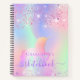 A trendy iridescent colored background with unicorn and rainbow pastel colors in pink, purple, rose gold, mint green. Decorated with faux glitter dust in pink, purple and a rainbow colored unicorn. Personalize and add a name. The title: Sketchbook is written with a trendy hand lettered script with swashes. To keep the swashes only delete the sample name, leave the spaces or emoji's in front and after the name.