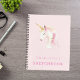 A girly sketchbook for school or her creativity. A soft, blush pink background, decorated with a cute pink watercolored unicorn. Personalise and add a name.