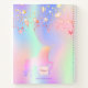 A trendy iridescent colored background with unicorn and rainbow pastel colors in pink, purple, rose gold, mint green. Decorated with dripping faux gold and pink stars and a rainbow colored unicorn. Personalize and add a name. The title: Sketchbook is written with a trendy hand lettered script with swashes. To keep the swashes only delete the sample name, leave the spaces or emoji's in front and after the name.