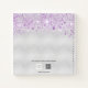 A faux silver metallic looking background with violet, purple faux glitter dust. Add your name, and text. The name is written with a hand lettered style script with swashes.