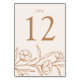 Elegant floral table number cards featuring copper sketched flowers and leaves near the bottom of the design with an almond background. Personalise the sketched floral table cards with the table number in classic copper lettering. To order the table cards, edit and add each number to your cart individually, then check out when you're finished. Designed to coordinate with our Sketched Floral wedding collection.