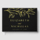 Elegant floral wedding guest book featuring sketched gold foil flowers and leaves near the top of the design with a black background. Personalise the foil wedding guest book with your names and wedding details below. Add custom text to the spine such as your names, wedding date, etc. The back of the floral guest book features your horizontal engagement photo. Designed to coordinate with our Sketched Floral wedding collection.