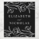 Elegant floral wedding wine labels featuring delicate white sketched flowers and leaves on a sleek black background. Personalise these sketched floral wine labels with your names for a refined, coordinated look. Perfect for wedding receptions, bridal showers, or engagement parties, they’re designed to match our Sketched Floral wedding collection.