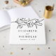 Elegant floral wedding guest book featuring sketched black flowers and leaves near the top of the design with a white background. Personalise the botanical wedding guest book with your names and wedding details below. Add custom text to the spine such as your names, wedding date, etc. The back of the floral guest book features your horizontal engagement photo. Designed to coordinate with our Sketched Floral wedding collection.