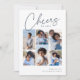 Share cheer with these modern New Year holiday cards featuring 6 of your favourite photos in a grid collage layout. "Cheers to [Year]" appears at the top in classic serif and casual hand sketched cursive script. Personalise with your family name at the lower right.