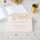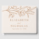Elegant floral wedding guest book featuring copper sketched flowers and leaves near the top of the design with an almond background. Personalise the botanical wedding guest book with your names and wedding details below. Add custom text to the spine such as your names, wedding date, etc. The back of the floral guest book features your horizontal engagement photo. Designed to coordinate with our Sketched Floral wedding collection.