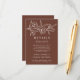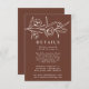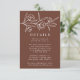 Elegant floral wedding details cards featuring white sketched flowers and leaves near the top of the design with a brown background. Personalise the botanical wedding details cards with your wedding details below in classic white lettering. Designed to coordinate with our Sketched Floral wedding collection.