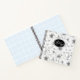 A beautiful pattern of hand drawn flower outlines in shades of grey is used to create the pieces of this modern collection. The striking notebook shown here also features elegant handwritten script text in white on a black background. Search ID939 to see all the products in this design set.