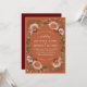 A unique take on floral wreath with touches of peach and maroon over a tan taupe background (customise the background colour to any of your choice); original illustration by Becky Nimoy.