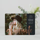 Bold and modern graduation announcement features your favourite photo with "graduate" overlaid in hand sketched gold foil brush typography. Personalise with the graduate's name, class year and school along the right side on a chic band of charcoal black.