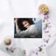 Modern graduation photo announcement features a horizontal or landscape orientated photo on the front, with "Graduate" overlaid in gold foil script lettering, and your graduate's name, school and graduation year beneath. Add a personal message to the back, along with an additional photo.