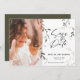 Sketched leaf botanical foliage modern photo wedding save the date card. Classy modern abstract hand drawn design. Part of a collection.