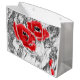 Sketched pen hand drawn red poppies flowers floral large gift bag