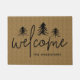 Perfect for the holidays, winter time, or your woodland home or cabin, this cute forest themed doormat features "welcome" in handwritten calligraphy script, with a trio of hand sketched pine tree illustrations on a classic tan background. Personalise with your family name.