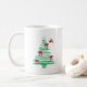 sketchy christmas tree with red bow and santa hat coffee mug