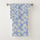 Darling white daisies with yellow centres on a dusty blue background gives this bath towel set a sweet boho look that you will love. Little bit country, and very stylish!
