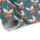 Sketchy Winking Reindeer Face Teal Pattern Wrapping Paper