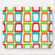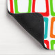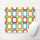 This mouse pad has a mid-century modern design of repeating skewed rectangles in red, orange, green, and turquoise.