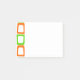 These notes have a mid-century modern design of repeating skewed rectangles in red, orange, green, and turquoise.