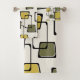 A stylish 1950's atomic era abstract art pattern with dark brown skewed squares in chartreuse green and yellow.